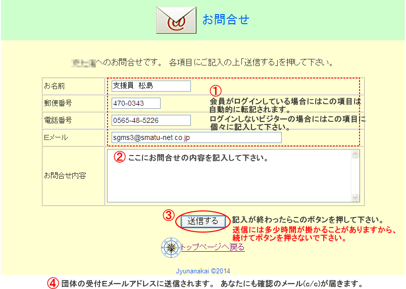 「お問合せ」はログインしている会員の方以外にも、このページを訪れたビジターの方でも利用出来ます。