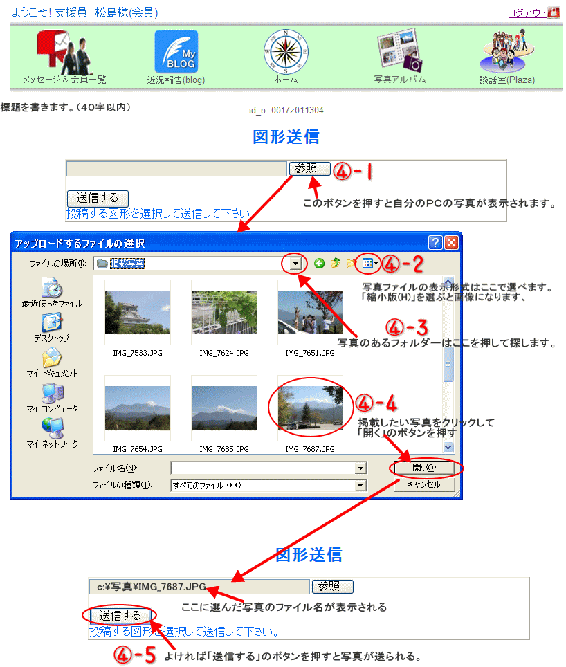 掲載する写真は、カメラ等から予めPCに取込んでおいて下さい。